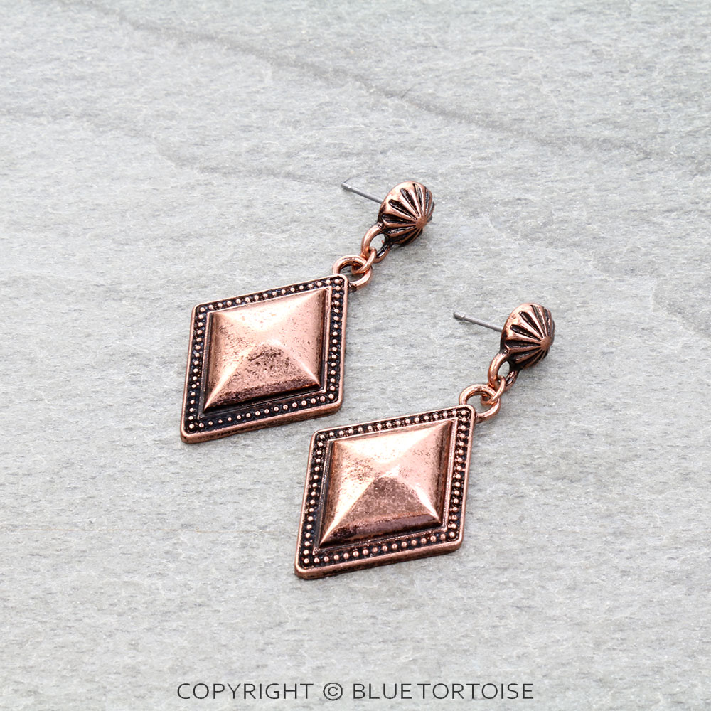Western Rectangle Flower Drop Stud Earrings