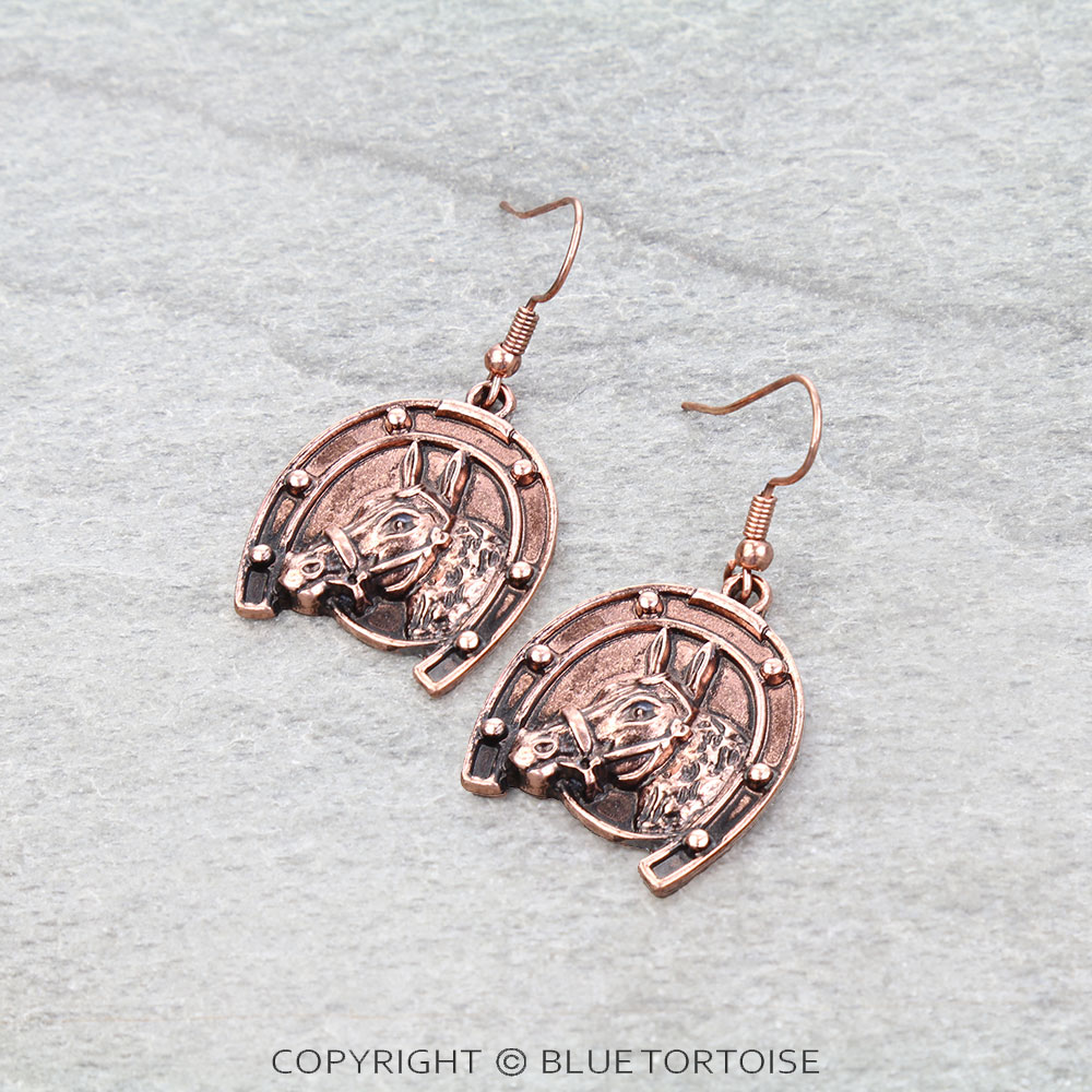 Western Horse & Horse Groove Dangle Earrings