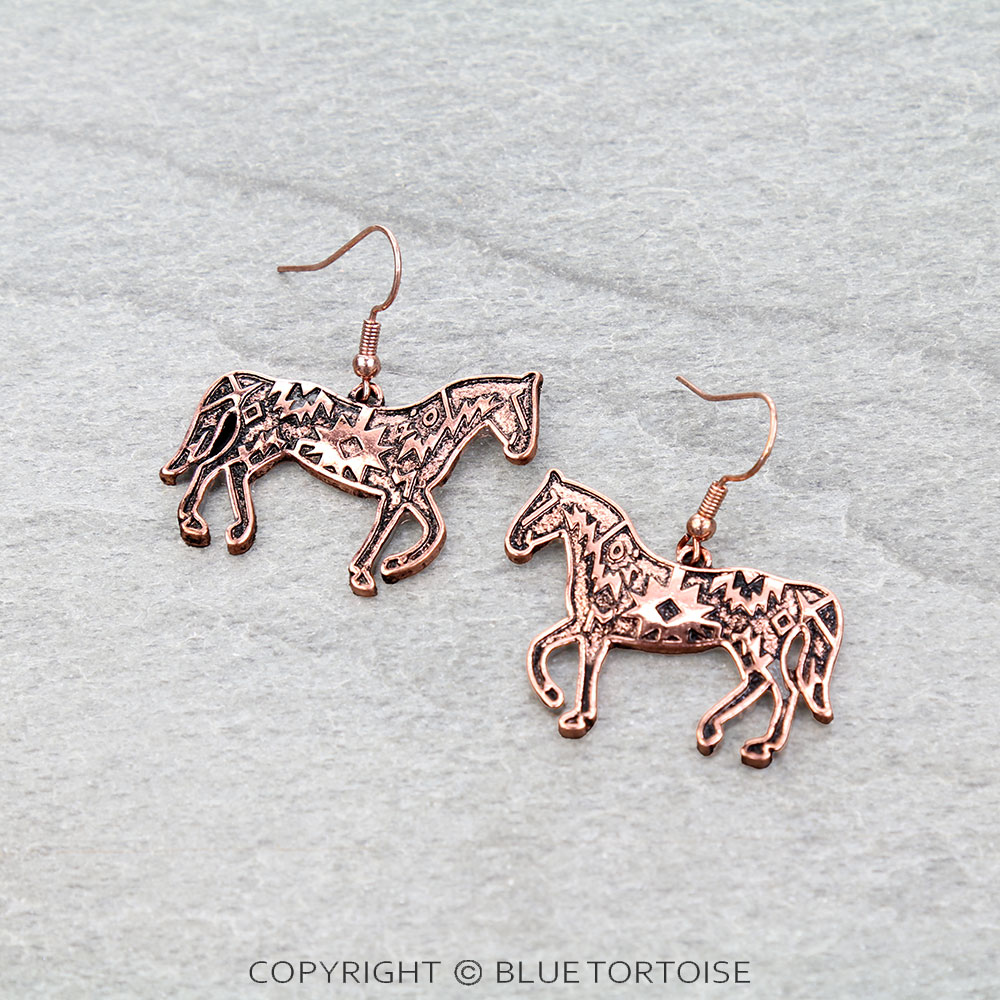 Western Aztec Horse Dangle Earrings