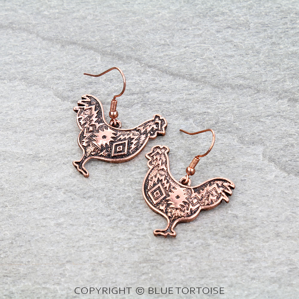 Western Aztec Rooster Dangle Earrings