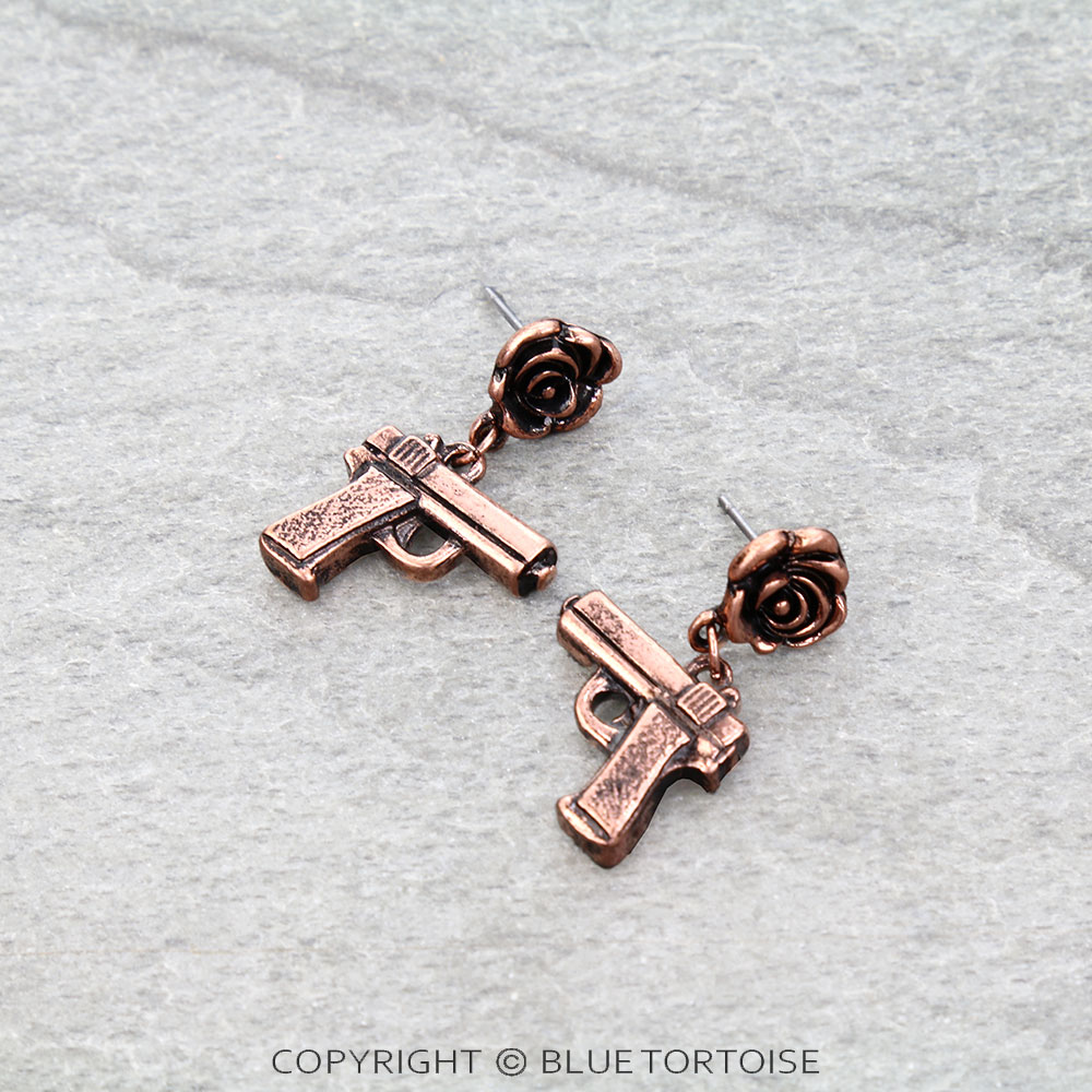 Western Rose & Gun Stud Earrings