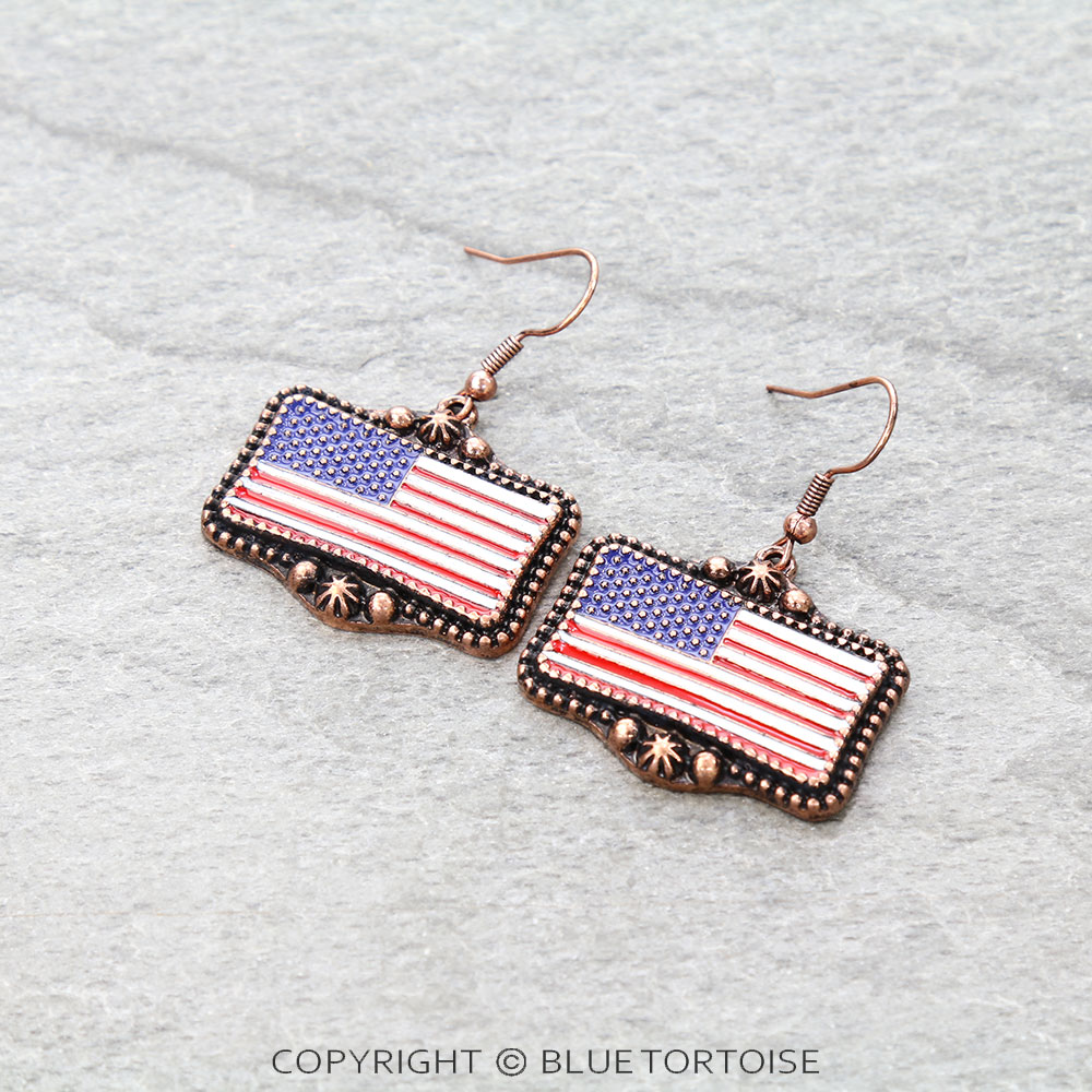 Western TXR US Flag Dangle Earrings